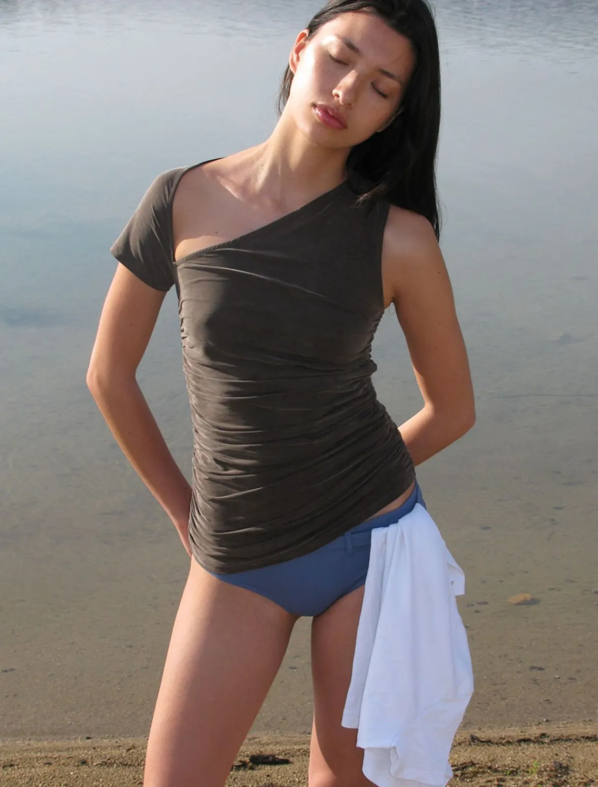 Cupro Asymmetrisk Top Med Rynket Krop.