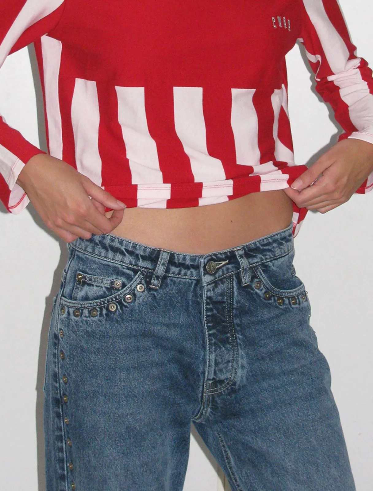 Denimbukser Til Kæresten Med Nitter, Skåret Til En Løs Pasform Med Lav Talje.