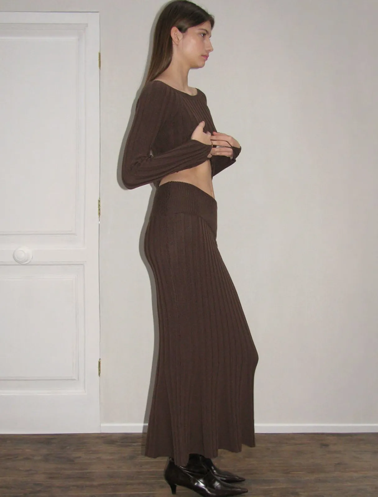 Udvidet Strikket Lang Nederdel Lavet Af Et Blødt Garn.