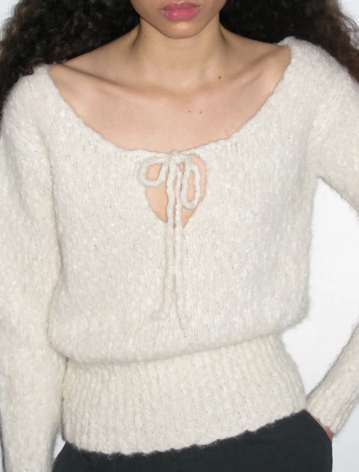 Langærmet Sweater Med Snøre Foran.