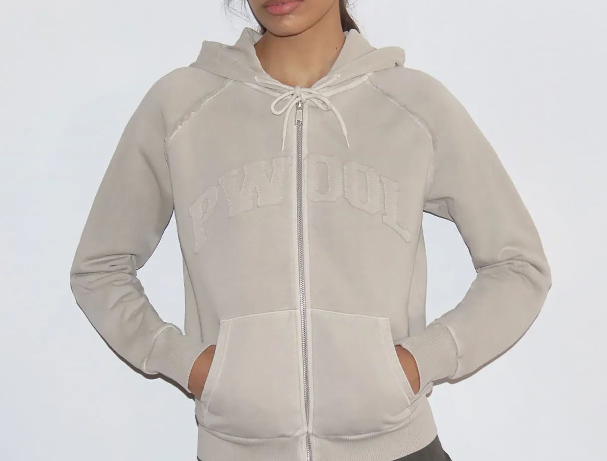Zip-Up Hættetrøje Med ‘Pwool’ Råskåret Tekstdetaljer.