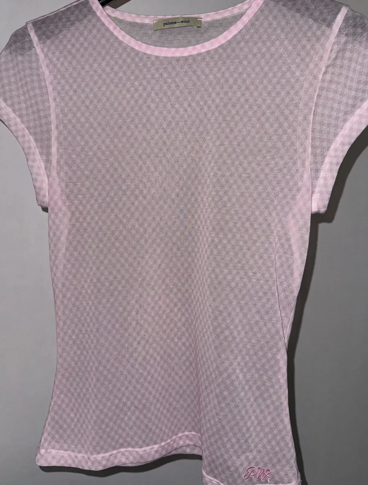 Delikat, Gennemsigtig, Kortærmet Top Med Diamantprint Og Paloma-Uldbroderi.