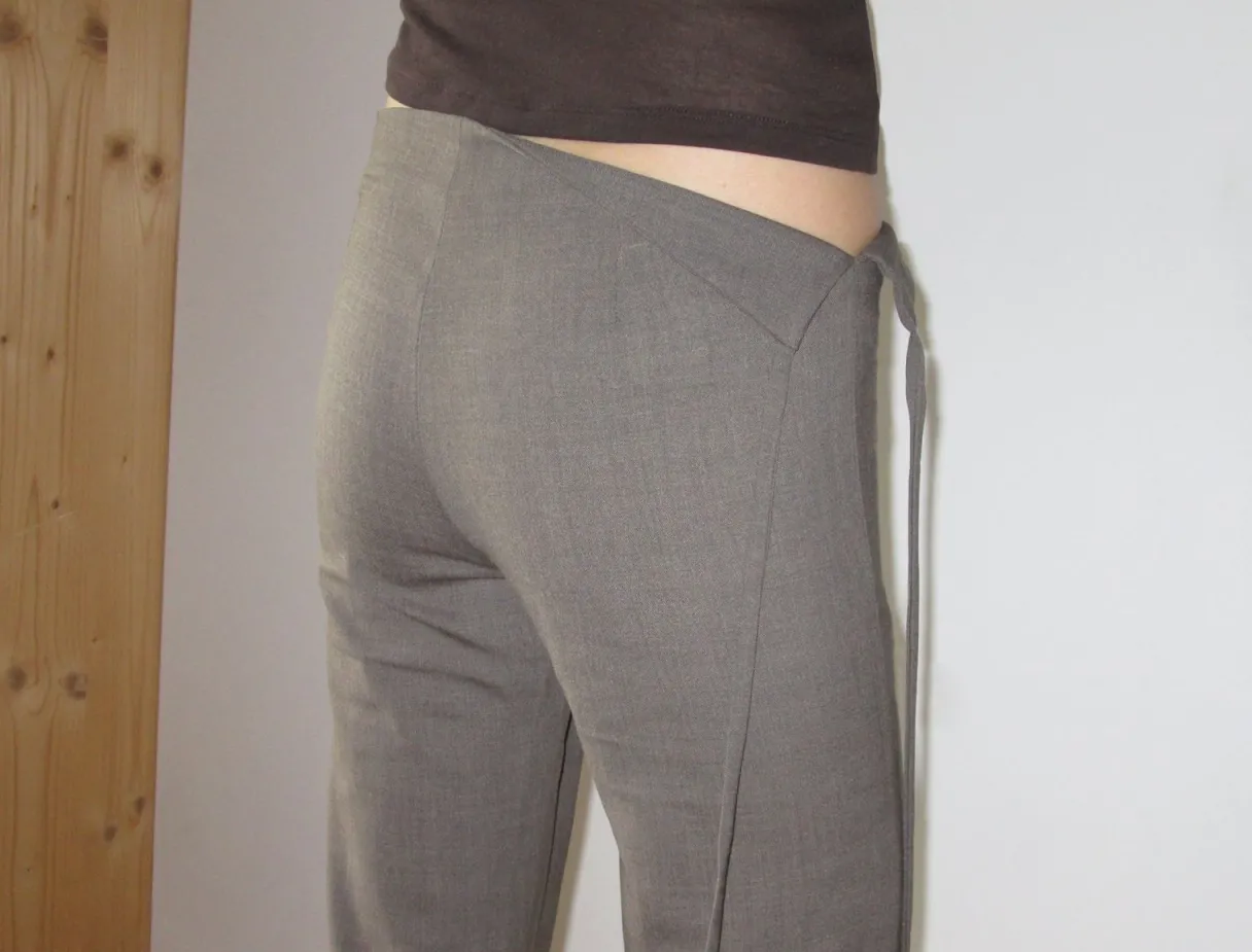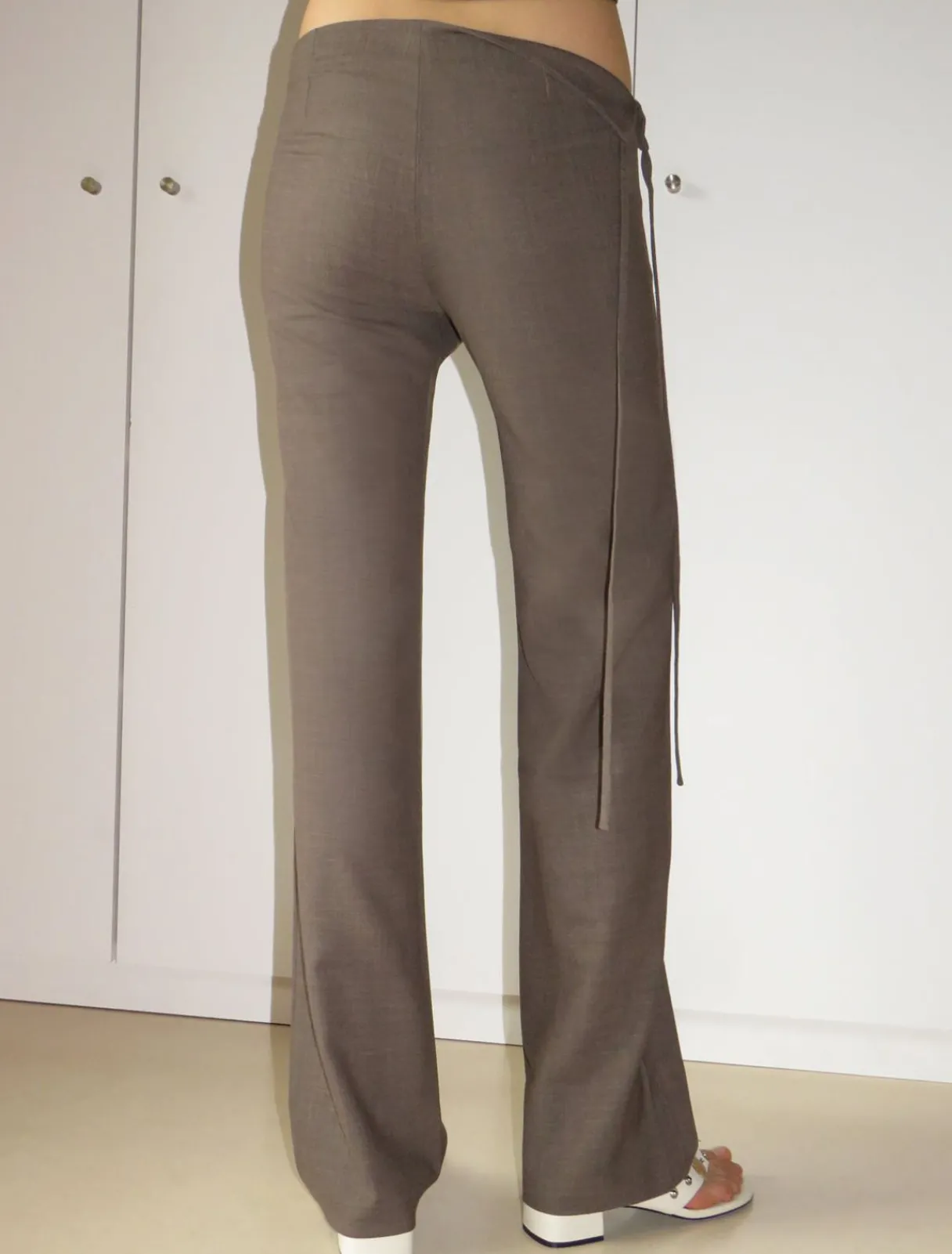 Bukser Med Lav Talje Med Foldet Stykke I Linningen Med Snor. Du Kan Bære Den Tabt Eller Binde Den.