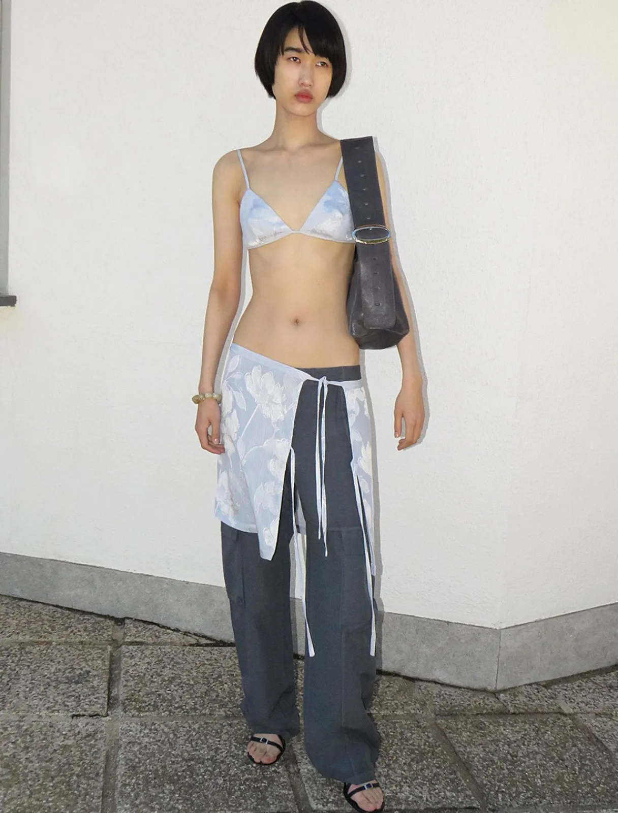 Lidt Skinnende, Stroppet Bh Med Blomsterjacquard.